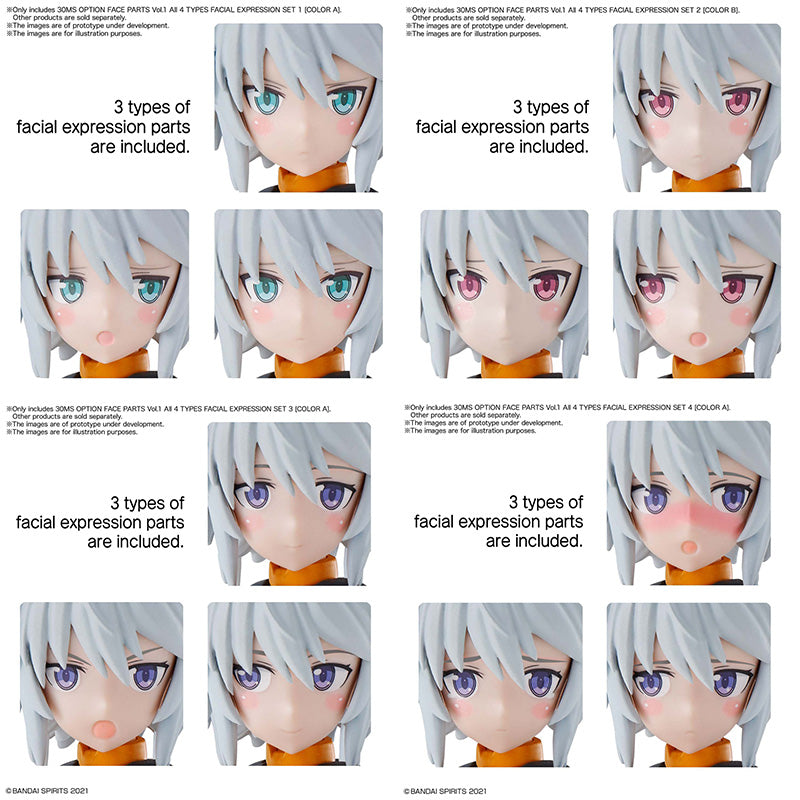 BANDAI - 30MS - Options Face Parts 1 All 4 Types 1/144
