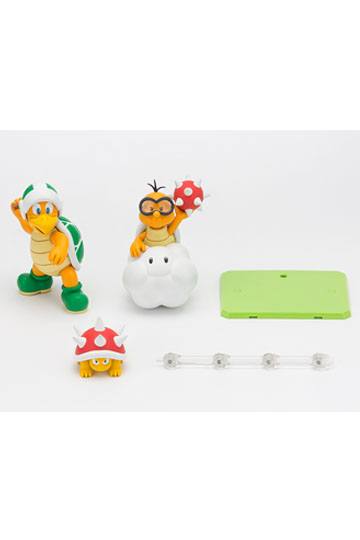 It's a scary day for S.H.Figuarts Mario figures everywhere... If he wasn't traumatized enough by the enemies from our last Diorama Play Set D, he will when these formidable fellows come around. Introducing the ever menacing Diorama Play Set E! Neither the ground nor the sky is safe with Hammer Bro, Spiny and Lakitu coming your way. This set also includes a display stage and support parts.