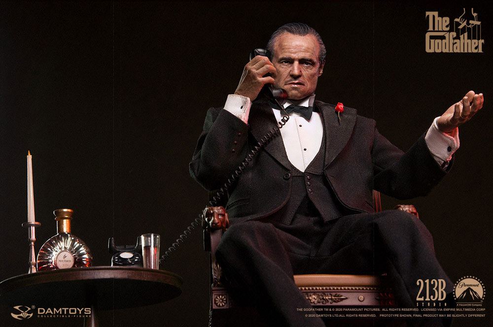 Damtoys is proud to announce The Godfather Vito Corleone Sixth Collectible Figure, the movie protagonist as portrayed by Marlon Brando. The Godfather is a classic movie - directed by the famous Francis Coppola; winner of the 45th Oscars for Best Picture, Best Actor, and Best Adapted Screenplay; ranked no. 2 by the American Film Institute in 100 Years... 100 Movies 2017. Damtoys has transformed Vito Corleone's classic image into a 1:6 scale Collectible Figure. The head sculpt and costume fully demonstrate the latest production technology and faithfully recreate the character's likeness. With the rich accessories and highly poseable body (more than 30 points of articulation), collectors can pose him as in the movie.