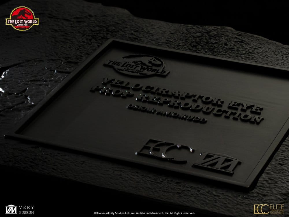 Elite Creature Collectibles is proud to present the Male Velociraptor Eye Prop Replica, the newest addition to our Jurassic Park reproduction line. ECC key artist Oskar Ankarudd faithfully recreated every intricate detail, leveraging full-color 3D-printing technology to produce this stunning and highly accurate raptor eyeball replica.
