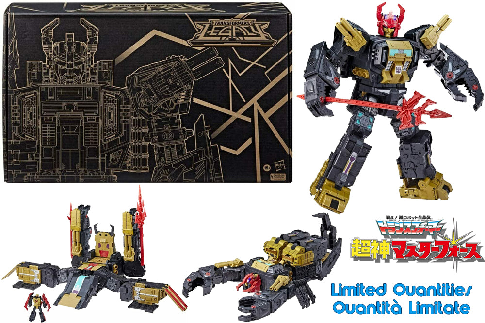 La figura si converte dalla modalità robot alla modalità base in 39 passaggi, quindi alla modalità scorpione in 33 passaggi. Il personaggio viene fornito con la classica Lancia del Tiranno e lo scudo, oltre al cannone a spalla. La lancia si divide in pezzi che possono essere riposti sui lati della figura in modalità scorpione. La punta della lancia si attacca alla coda in modalità scorpione. Lo scudo si attacca al braccio della figura in modalità robot.