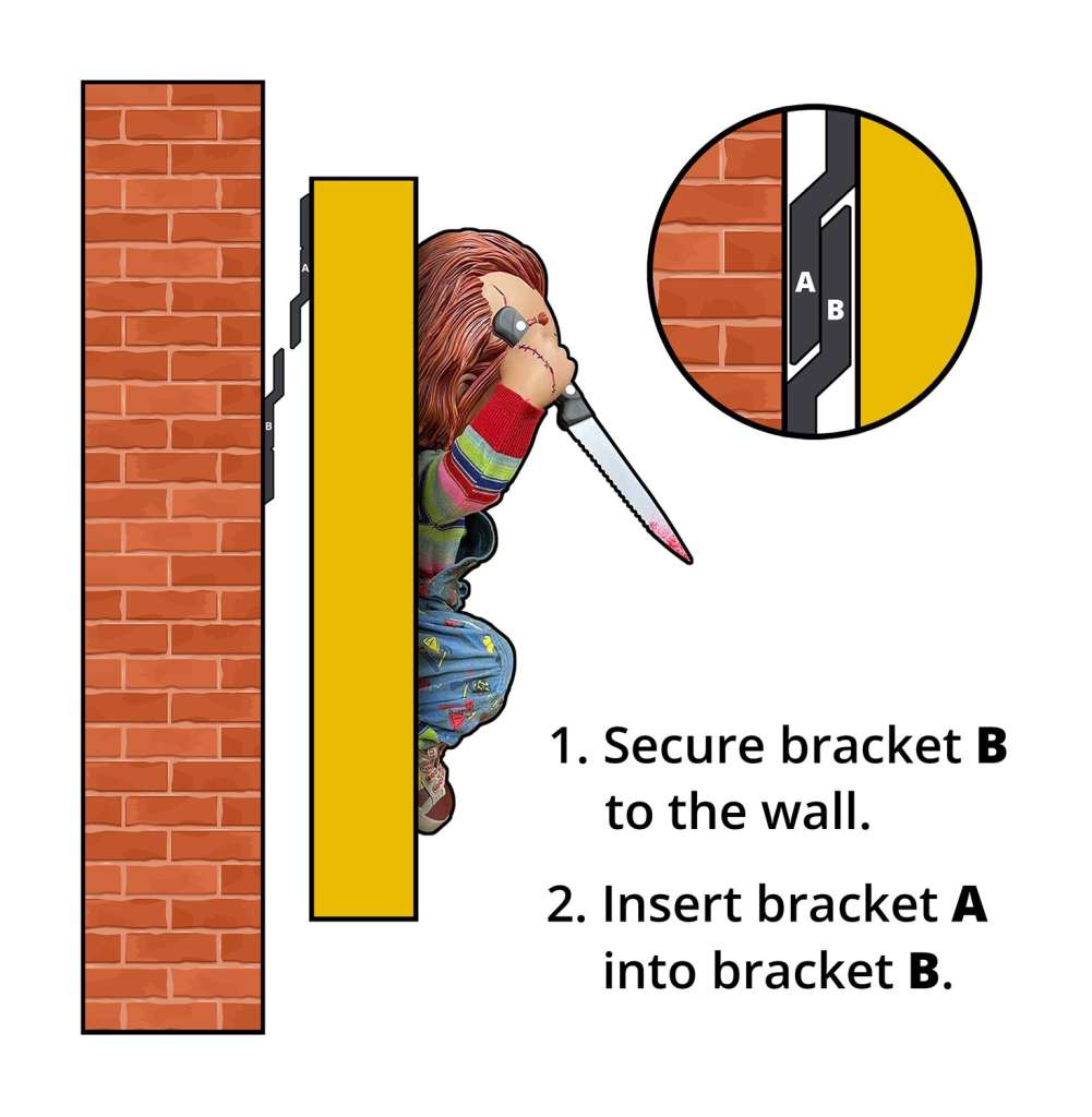 Disponibile sia a grandezza naturale sia in "mezza scala", questa scultura da parete tratta dala pellicola Bride of Chucky cattura la bambola assassina nel suo momento più folle, mentre irrompe violentemente dalla sua iconica scatola “Good Guys”, coltello alla mano, nel pieno del caos.