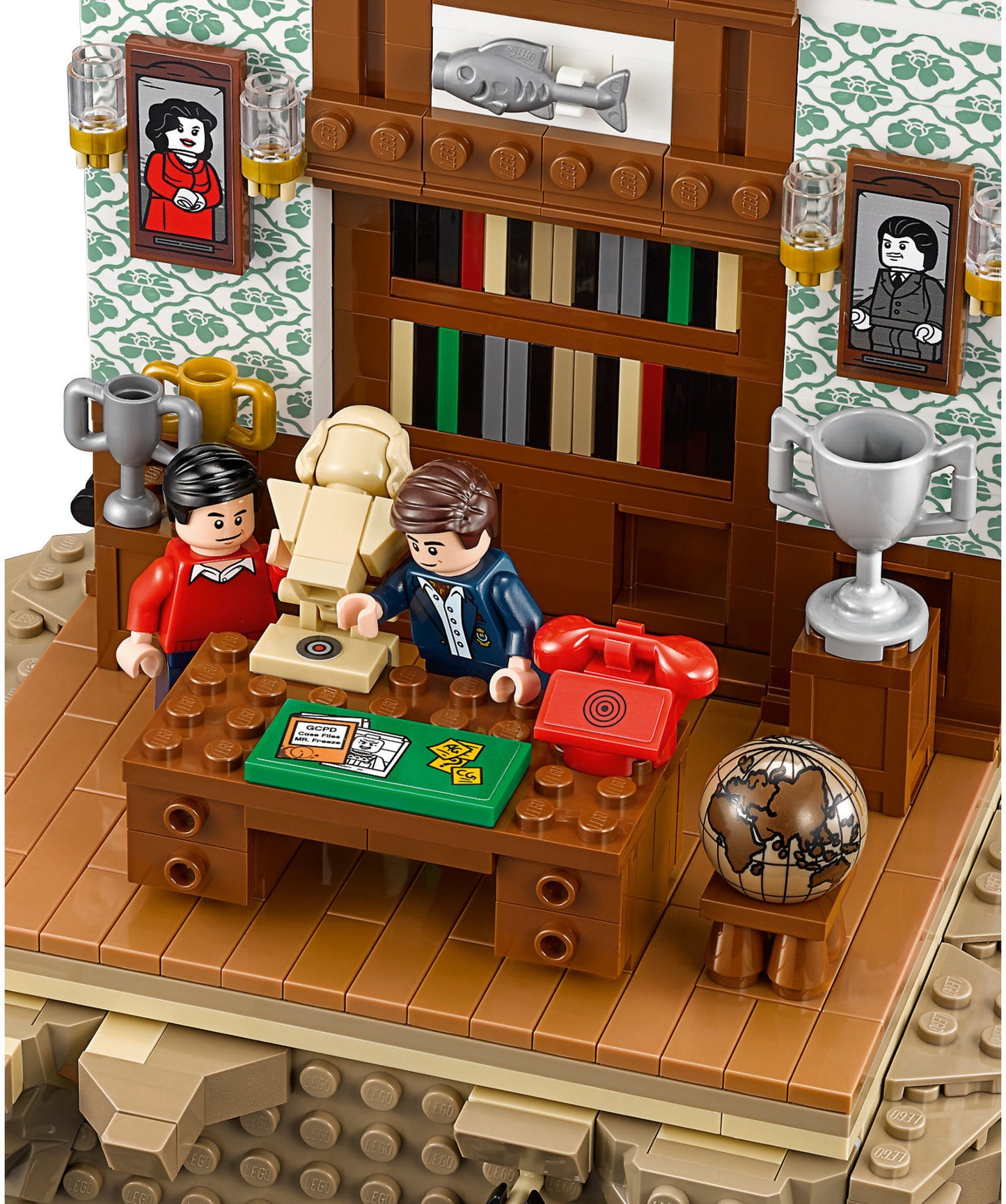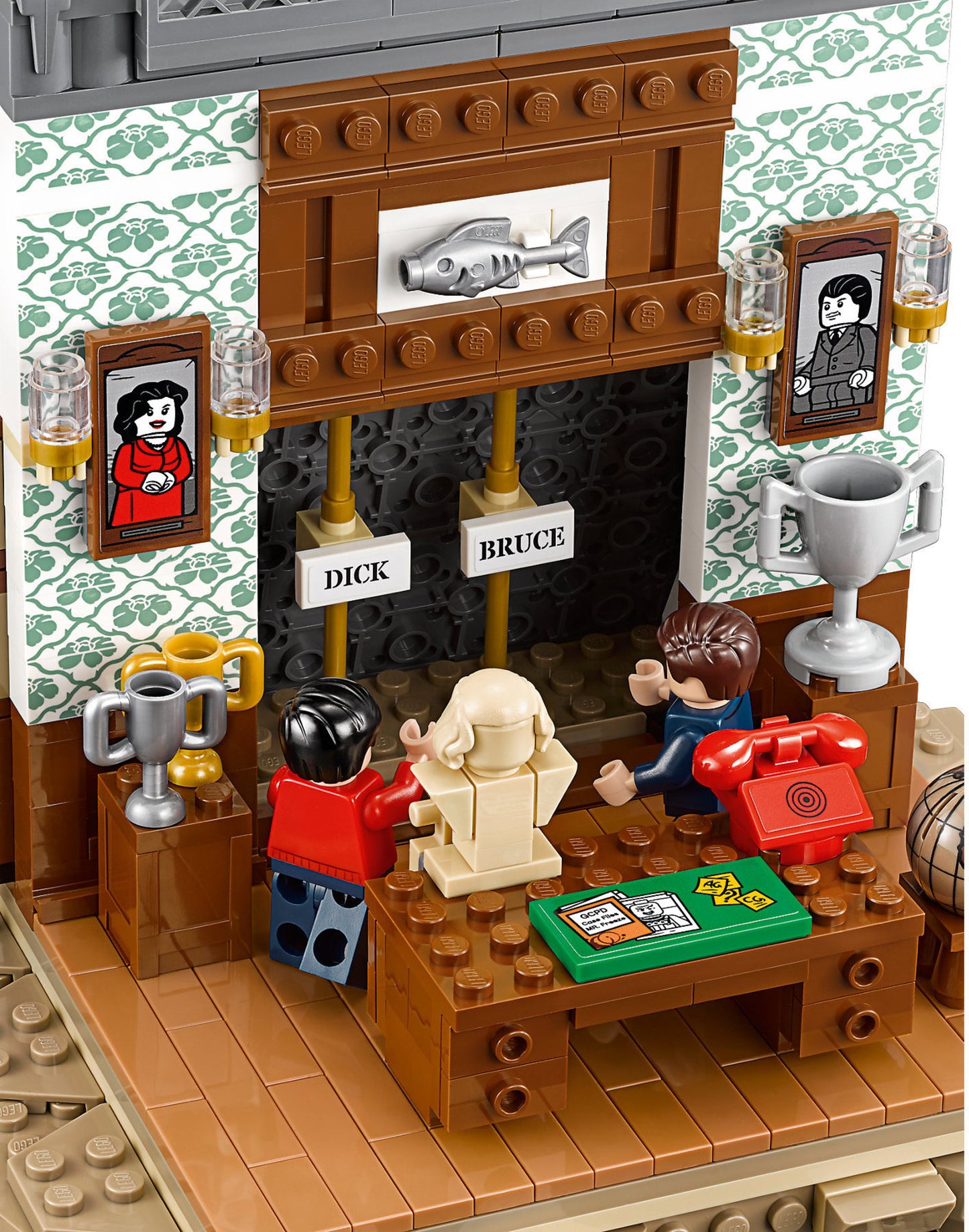 Questo modello LEGO®, riproduzione fedele della Batcaverna della serie televisiva degli anni '60, è dotato di 2 pertiche per Batman™ e Robin, diversi "gadget", eliporto, Batmobile e Batcottero.