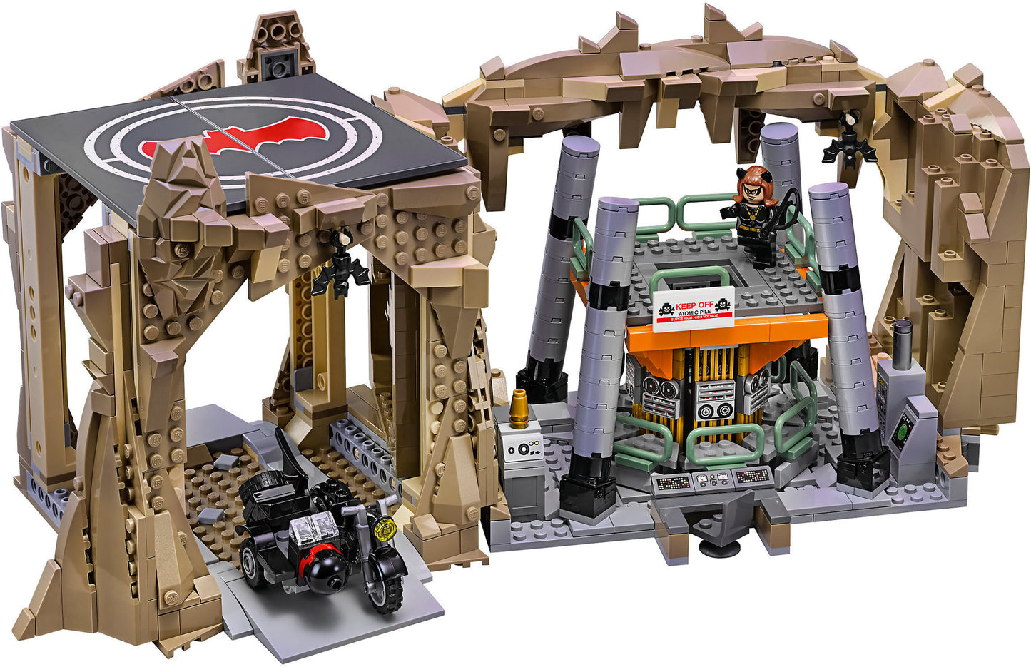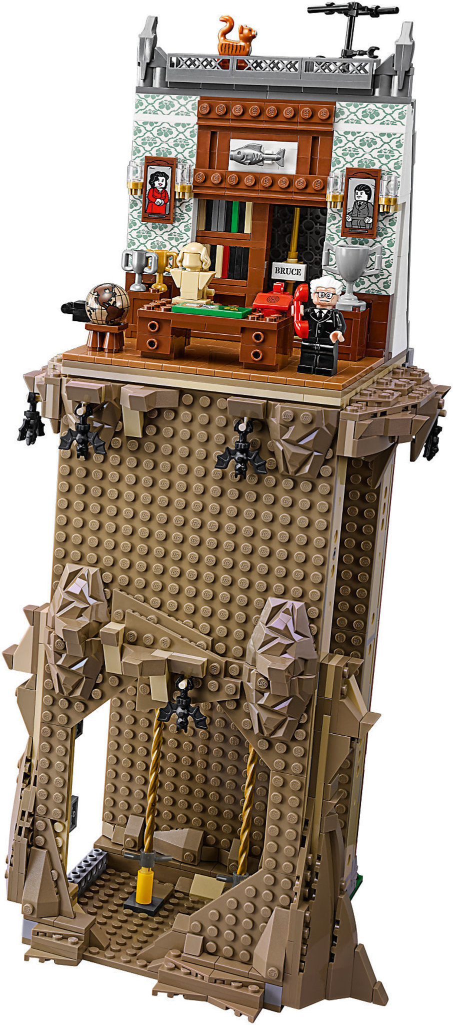 La Batcaverna contiene un laboratorio hi-tech a 2 piani con elemento supercomputer e una varietà di elementi accessori staccabili, tra cui una per macchina della verità, un tavolo, una cassettiera, Bat-gadget e provette con elementi trasparenti. Include inoltre l'iconico ingresso della Batcave per la Batmobile e un eliporto per il Batcottero.