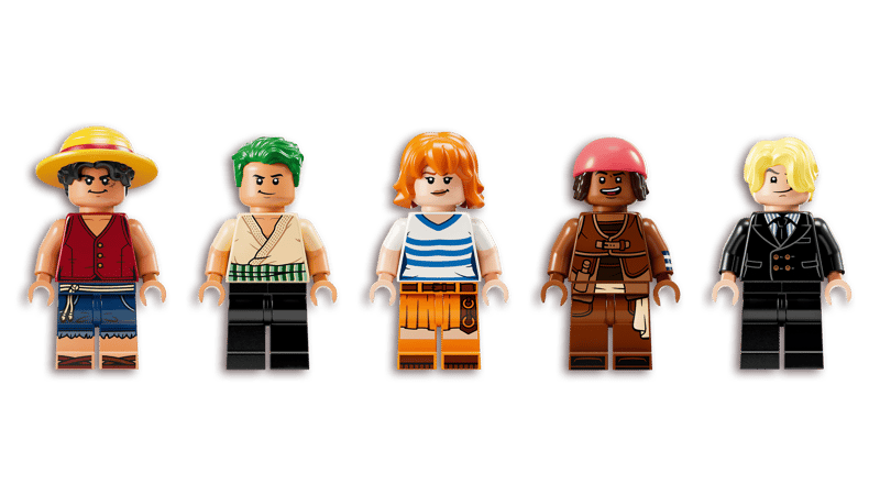 L’iconica nave è dotata di diversi spazi interni: una cabina per l’equipaggio, una cucina, un magazzino e un’officina per gli accessori. Il modello contiene 5 minifigure LEGO ONE PIECE. Luffy siede sulla polena della pecora nella parte anteriore della nave, sotto la quale si trova un cannone; Zoro si rilassa e si allena sul ponte; Nami controlla il timone nella parte posteriore, dove sul ponte crescono i suoi alberi di mandarino preferiti; Usopp si arrampica sugli alberi e fa la guardia dalla coffa; Sanji porta le pentole giù per le scale fino alla cucina. Include 4 poster “Ricercato”. L’app LEGO Builder permette ai bambini di ingrandire, ruotare i modelli in 3D e seguire i progressi. Il set contiene 1.376 pezzi.