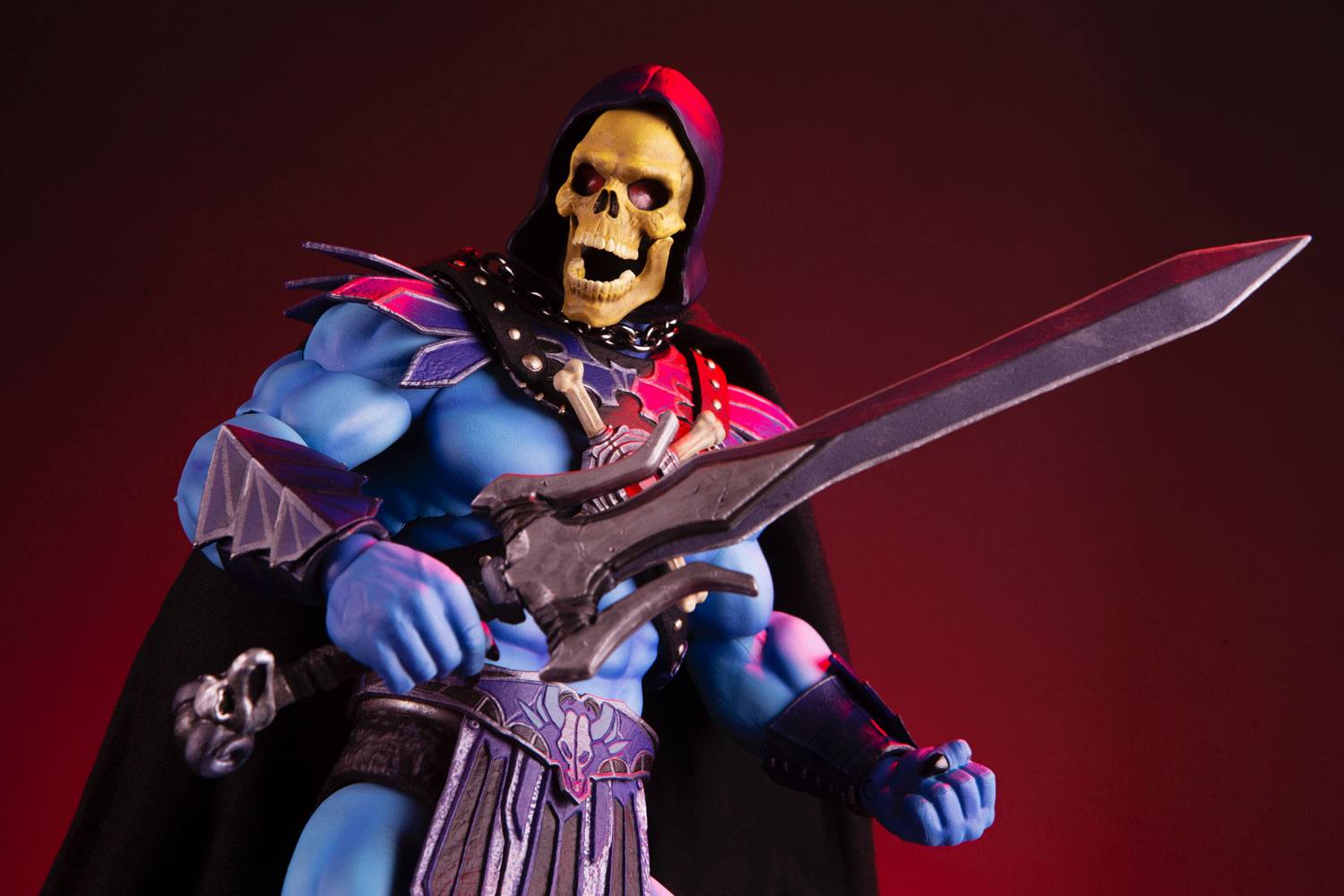 You must possess all, or posses nothing! Mondo is proud to bring you the second in our Masters of the Universe 1/6 scale figure line- Skeletor! Featuring over 30 points of articulation, reversible fabric cape, and a lot of accessories, Skeletor is the most evil figure this side of Snake Mountain!