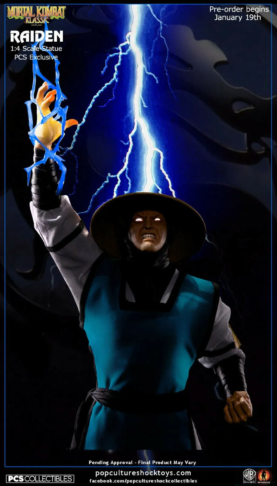 Pop Culture Shock Collectibles is proud to announce the Mortal Kombat Klassic ‘Raiden’ 1:4 scale statue based on his appearance from Mortal Kombat 2. This masterfully created collectible stands 27.5" tall, has a cloth costume and a Certificate of Authenticity. Incl. Light up
