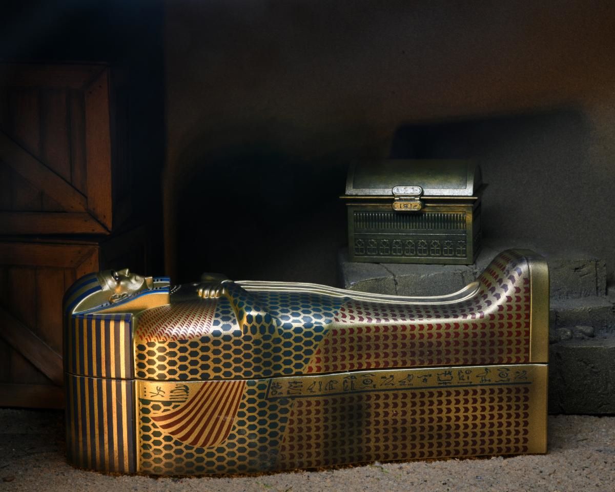Neca presenta un fantastico set di accessori da utilizzare con l'action figure della Mummia! Nel set troverete un bellissimo sarcofago, alto circa 22 cm con coperchio apribile, e una cassa di 3x7,5 cm.