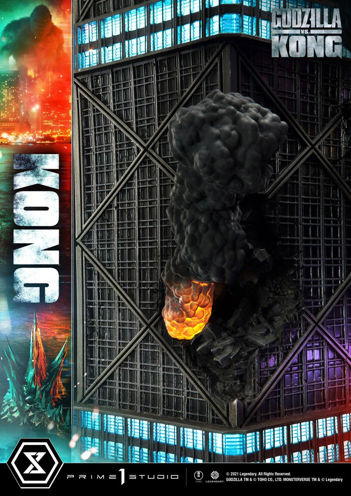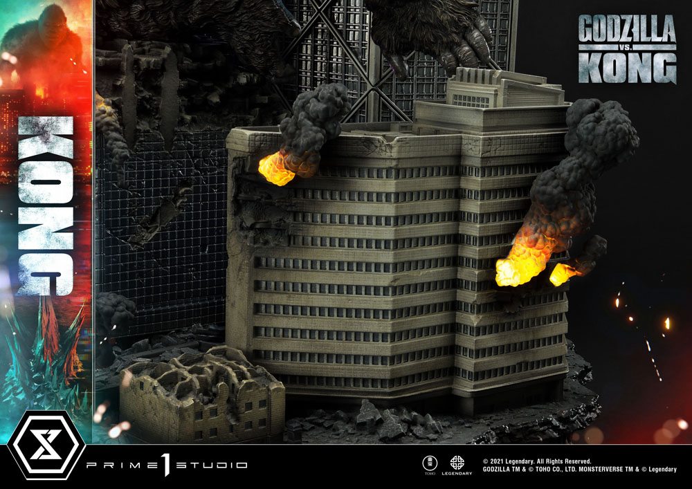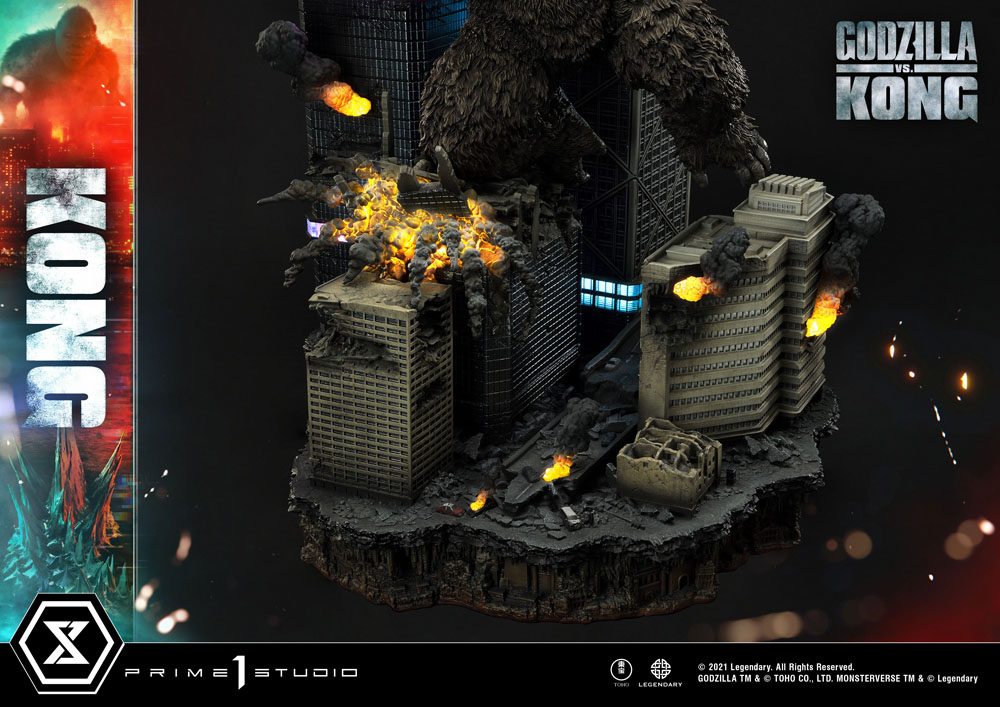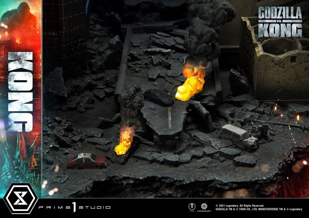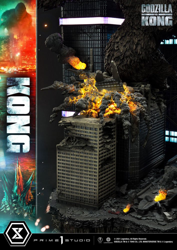 Kong bows to no one! And when his rival Alpha Titan, Godzilla, comes a-calling; Kong answers in spades! The King of Skull Island has climbed his way out of his Hollow Earth Kingdom to answer Godzilla's challenge in a nightmare vision of Hong Kong! This massive Kong diorama stands at a towering 31.5 inches tall!