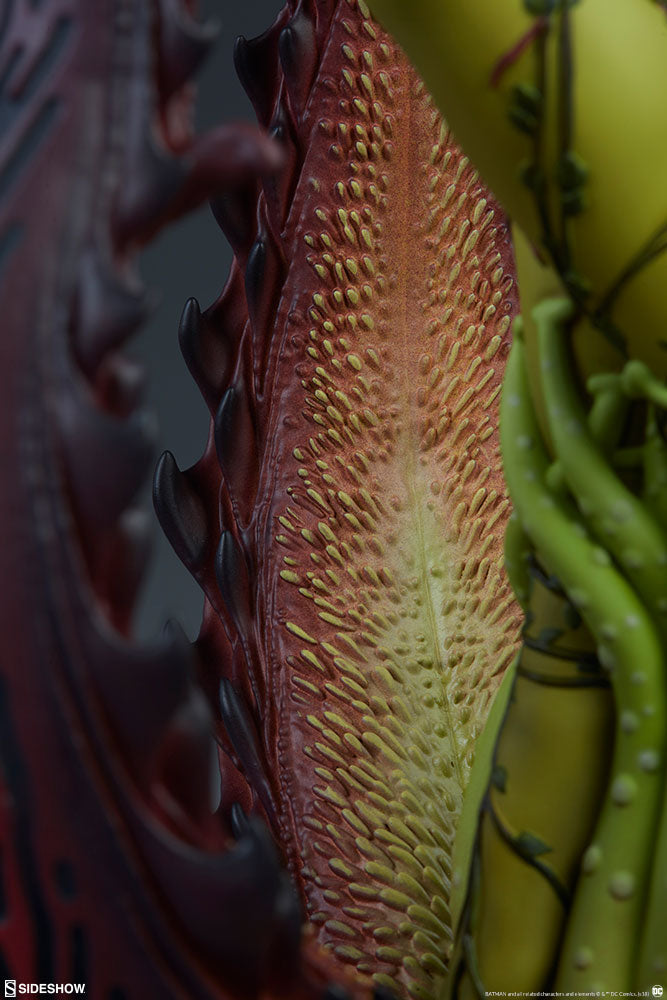 Poison Ivy measures 22 inch tall, standing in the center of a carnivorous plant base with purple petals revealing the toxic temptress. This modern take on Poison Ivy blends danger and desire into one incredible collectible.