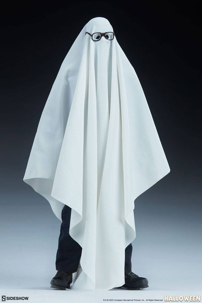 Inspired by his iconic appearance in the original Halloween (1978) movie, the Michael Myers Deluxe Sixth Scale Figure wears a costume of tailored blue fabric coveralls and a black fabric undershirt as well as sculpted boots. The figure includes two distinct portraits, one featuring a detailed depiction of his infamous mask, complete with sculpted hair and weathering details, and one portrait with non-removable glasses and a fabric sheet ghost costume.