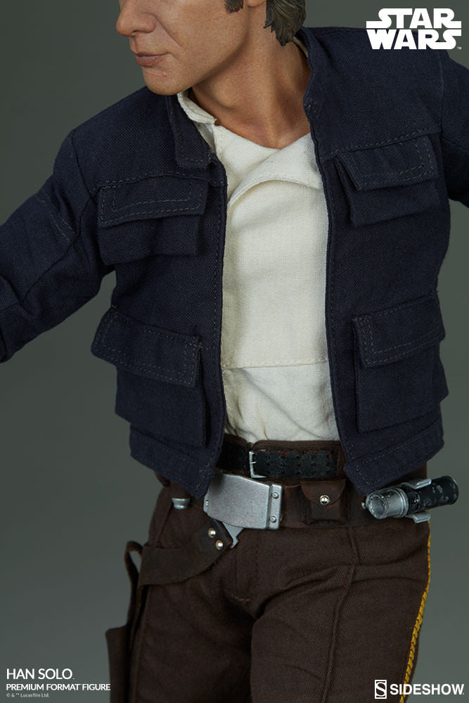 The Han Solo Premium Format Figure has an authentic Episode V costume sewn from fabric and leather elements to give his look an added sense of realism, down to the details of his belt.