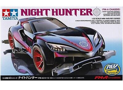 Questo kit di montaggio del modello Mini 4WD crea il Night Hunter, una macchina veloce, dalla sccocca con linee morbide ed eleganti, destinate a stupire, dai parafanghi anteriori e posteriori sporgenti e dallo spoiler posteriore minimalista.