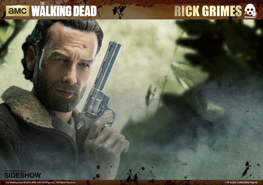 Sideshow Collectibles and Threezero are thrilled to introduce the sixth scale Rick Grimes collectible figure from AMC's The Walking Dead. Standing 12" tall, the Rick Grimes figure features a realistic likeness to the character portrayed in the series, tailored clothing and a weathered faux-leather jacket. Interchangeable hands, gear and his signature red handled machete make this the perfect addition to any The Walking Dead collection!